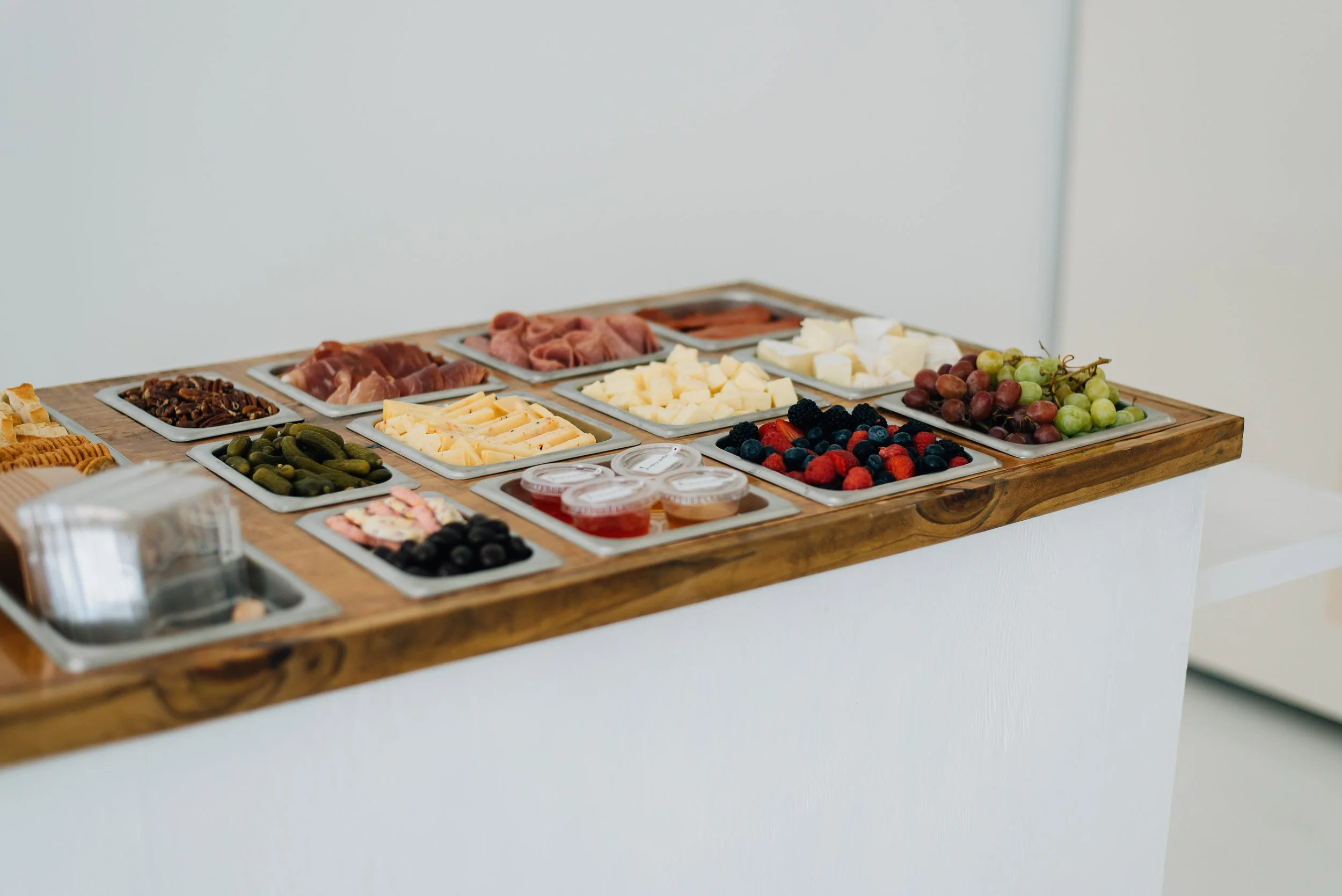 Dolly, our beloved charcuterie cart, elevates any event with her trendy, functionable style! She has 14 pans that will be filled with fresh produce, local honeys and jams, and artisan-quality meats and cheeses. She caters to everyone’s dietary needs and will be sure to please all guests. See rental and pricing info below.